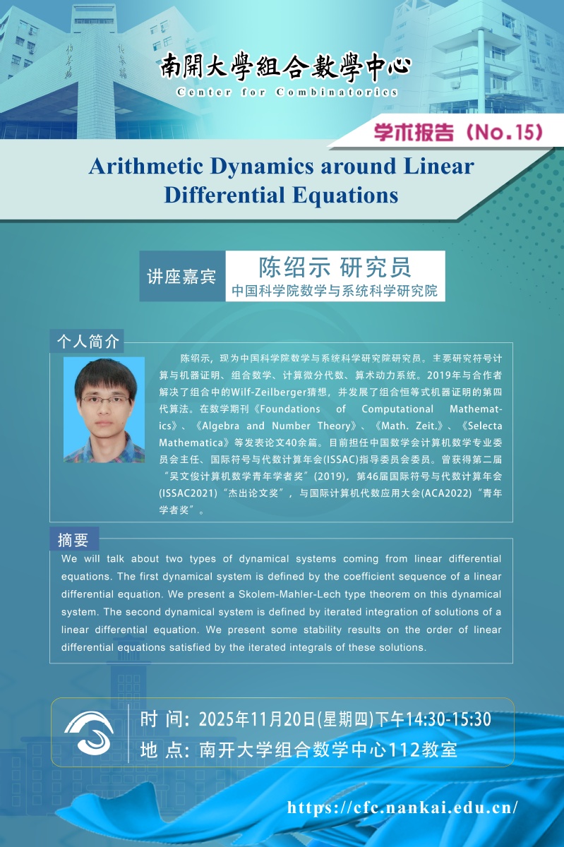 中国科学院数学与系统科学研究院陈绍示研究员应邀访问组合数学中心