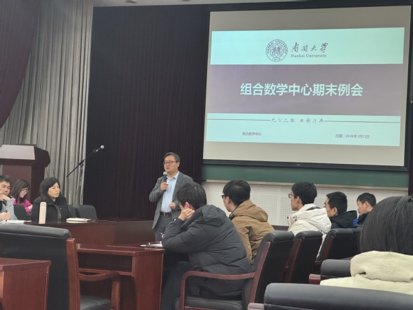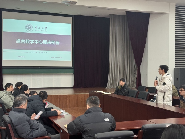 2026年1月23日,组合数学中心在多功能报告厅召开期末工作会议,总结本学期工作,并就研究生培养、学术研究与安全保障等工作进行交流部署。会议由中心副主任吴腾主持,常务副主任丁龙云教授、副主任杨立波教授、史永堂教授,教师代表以及全体学生共同参会。