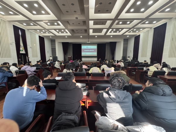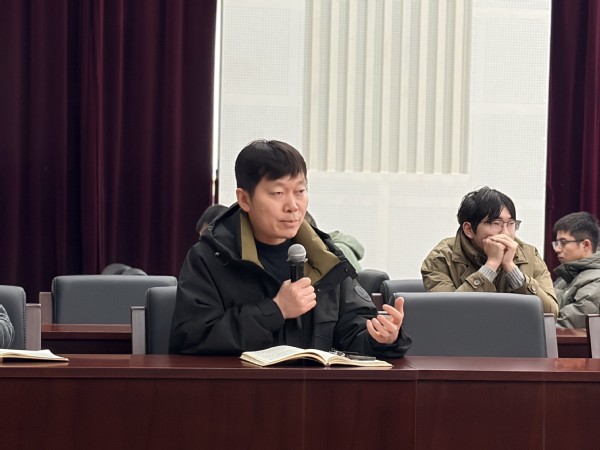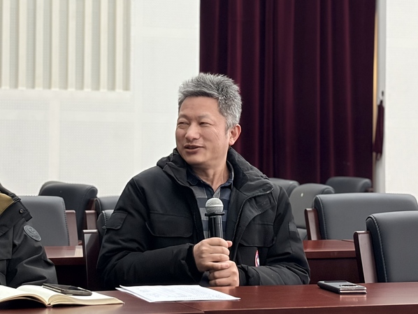 吴腾副主任通报了中心近期人事与科研成果。他介绍,本年度中心共引进4位博士后,以及新入职的马雨来博士入选了国家海外高层次人才项目。他着重强调了学术研究与做事必备的“认真”态度,并鼓励学生加强与导师的日常交流。此外,他对学生宿舍安全、工位卫生管理、防范电信诈骗及寒假返乡安全等事宜进行了详细提醒和部署。