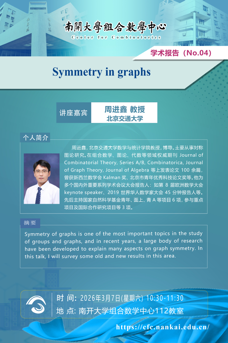 北京交通大学周进鑫教授应邀访问组合数学中心