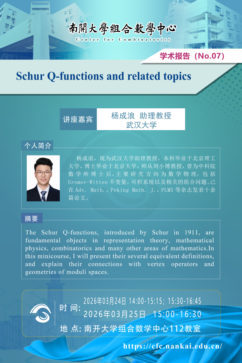 武汉大学助理教授杨成浪应邀访问组合数学中心